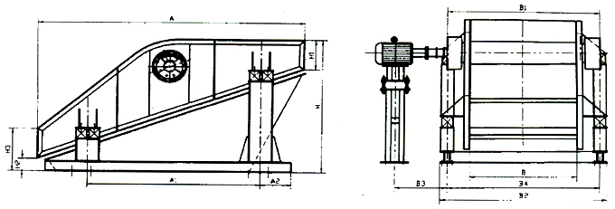 該系列篩主要有篩箱、篩網(wǎng)、振動(dòng)器、減振彈簧裝置、底架等組成。振動(dòng)器安裝在篩箱側(cè)板上,一并由電動(dòng)機(jī)通過聯(lián)軸器帶動(dòng)旋轉(zhuǎn),產(chǎn)生離心慣性力,延迫使篩振動(dòng)。